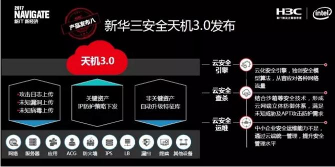 據(jù)了解,華三天機3.0具備了云安全引擎、云安全查殺、云安全運維等功能,能夠構(gòu)建創(chuàng)新性的動態(tài)安全能力中心,并能夠提供整體安全態(tài)勢監(jiān)控、安全業(yè)務(wù)快速部署、云安全防御、云端運維等一體化的安全交付能力。